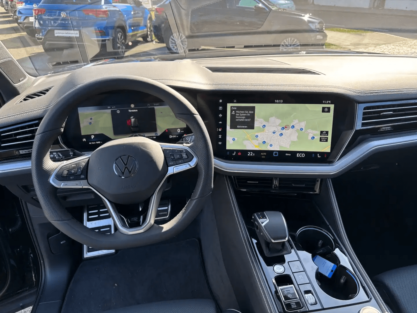 Touareg R-Line Black Style 2024 avec seulement 10.000 km, V6 Diesel 286 PS, 4Motion, Design noir complet, sièges massants, panorama, IQ.DRIVE, Sound Dynaudio, disponible immédiatement. Garantie constructeur incluse.